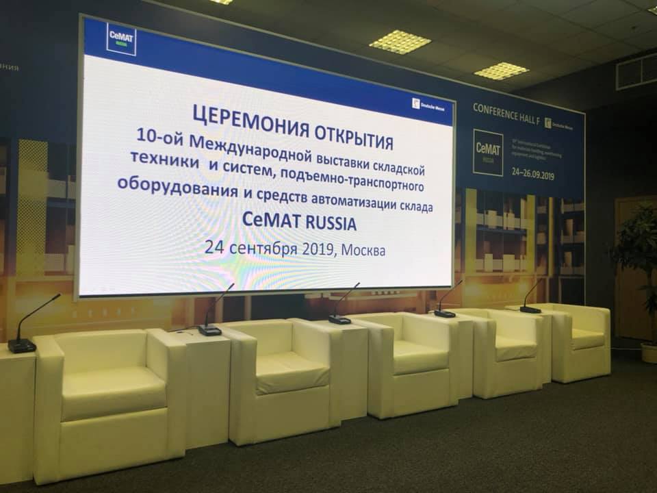Speech from Chairman of BVL Chapter Russia, Mirco Nowak, at the opening ceremony of CeMAT Russia 2019 - 10th anniversary with more than 150 exhibitors from 15 countries for materials handling, warehousing equipment and logistics - CeMAT Russia gave the unique picture of all latest developments in the fields of mechanical handling, warehouse technology and workshop equipment, packaging and order picking equipment, loading technology, entire systems for materials handling technologies, warehousing technology, intralogistics, systems and software for intralogistics, logistics services and outsourcing.