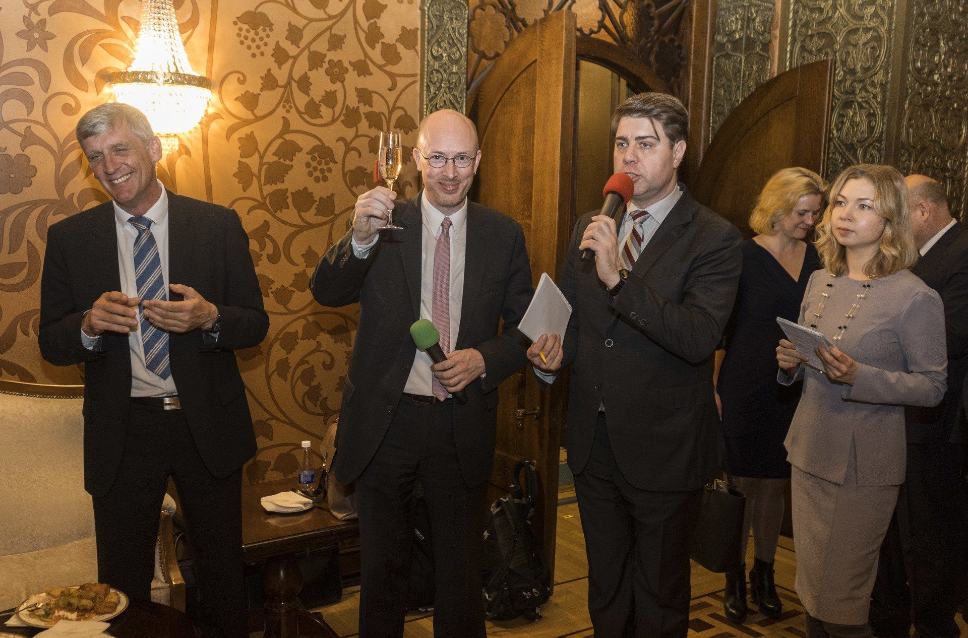 The 6th German-Russian Logistics Forum, co-organized by Chapter Russia of the BVL International on April 16 at the Hotel Metropol in Moscow, was a complete success. Parallel to the international transport and logistics trade fair "TransRussia", 250 high-professional participants used the great opportunity for personal exchange on shared experiences and perspectives in logistics, transport and traffic, informed themselves about current trends and innovations, received useful impulses from the organized Logistics Talks on the exciting topics „Logistics 4.0“, „Contract Logistics“, „New Silk Road“ and „Logistics of the Future“. Right at the beginning, an MOU was signed between CEO of Hamburg Port Marketing e.V., Mr. Ingo Egloff, and the Executive Director of the Russian "Digital Transport and Logistics Association”, Mr. Anton Zamkov. Professional contributions made i.a. the CEOs of Metrans, Kuehne+Nagel Russia/ CIS, Transcontainer, DB Cargo Russia and STS Logistics. On the subject of trimodality Mr. Vladimir Markin, Deputy Director of Moscow Canal. The CEO of LUNO Group, Mirco Nowak, moderated two of four Logistics Talks and presented BVL International and his Chapter Russia, which he has been heading since 2011. The evening reception for effective networking was opened by Minister Christian Pegel from the Ministry of Energy, Infrastructure and Digitalization of the state of Mecklenburg-Vorpommern and State Councilor Dr. Ing. Torsten Sevecke from the Ministry of Economic Affairs, Transport and Innovation of the Free and Hanseatic City of Hamburg.