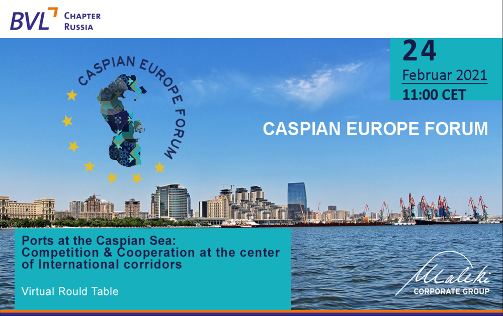 CASPIAN EUROPE FORUM Online-Round-Table "Ports at the Caspian Sea: Competition & Cooperation at the Center of International Corridors" - We discussed with experts and officials the recent developments at the ports and the challenges ahead. One of the panelists was Mirco Nowak, Chairperson, BVL Chapter Russia, with his presentation "Sustainable positioning of the Caspian region through the development and linking of international transport corridors".
